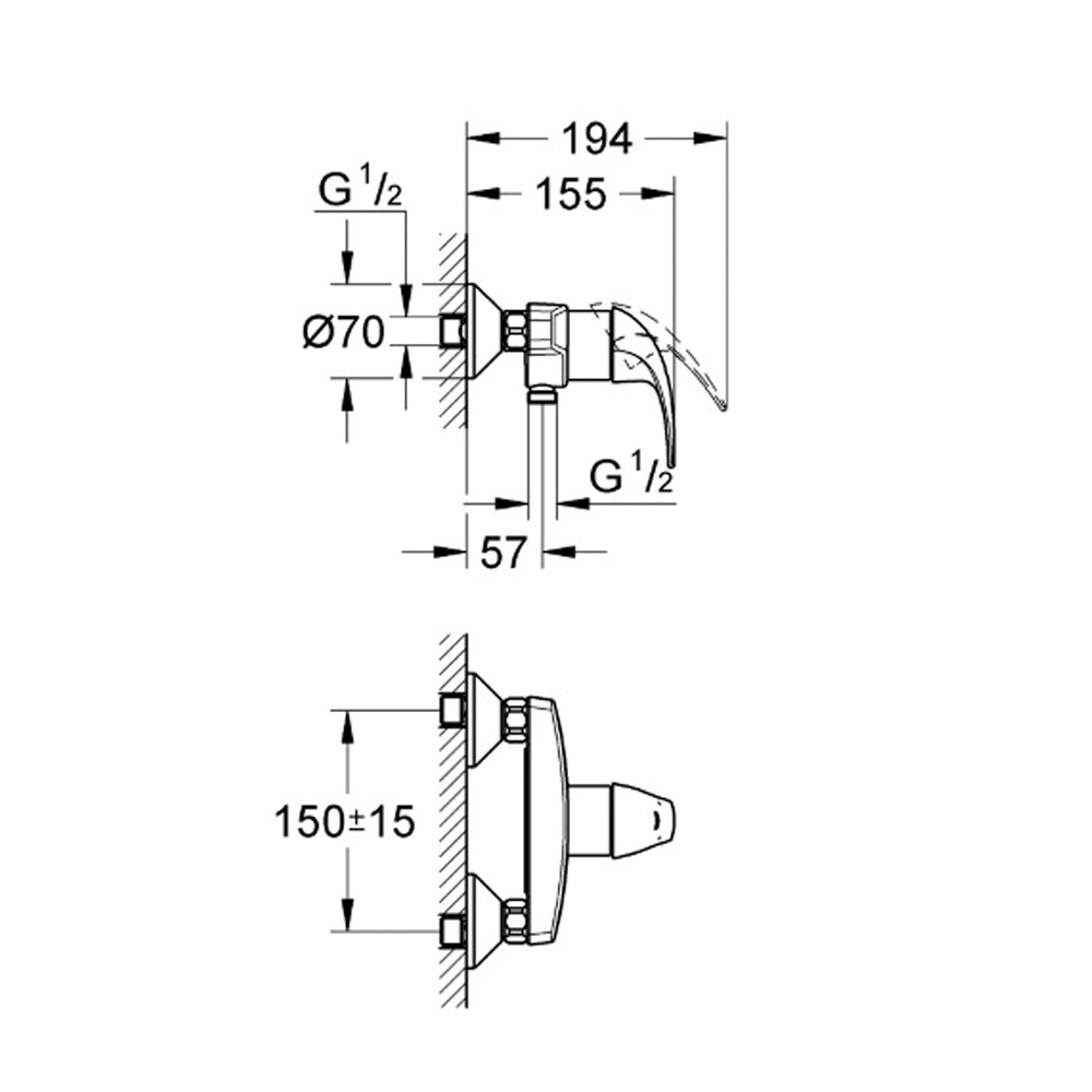 GROHE BAUCURVE BATERIJA ZA TUŠ KADU 23631000