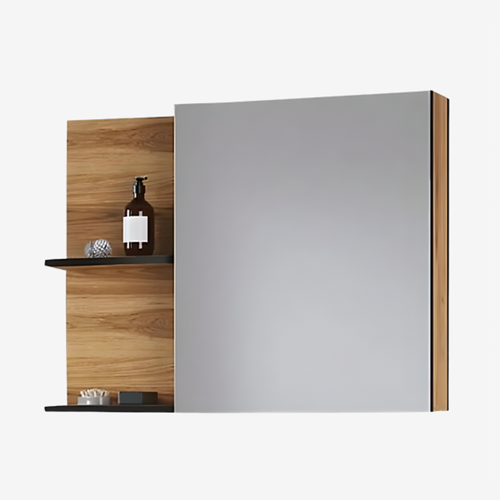 Izrađen od medijapana (MDF), ovaj model obezbeđuje stabilnost i dugotrajnost u svakodnevnoj upotrebi. Kombinacija Hazar drvnog dekora i crnih elemenata daje savremen i elegantan izgled koji se lako uklapa uz istoimeni ormarić sa umivaonikom ili druge moderne linije kupatilskog nameštaja.