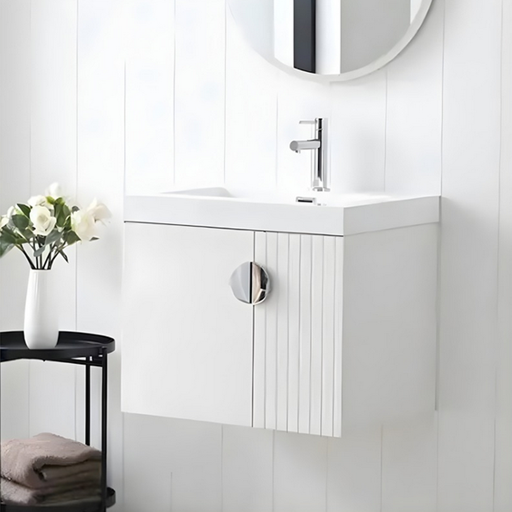 STEP White 65 ormarić sa umivaonikom donosi moderan dizajn sa naglašenim vertikalnim linijama koje stvaraju vizuelnu dinamiku i daju kupatilu poseban karakter. Bela mat površina pojačava osećaj čistine i elegancije, dok okrugla minimalistička ručkica unosi diskretan, savremen detalj.